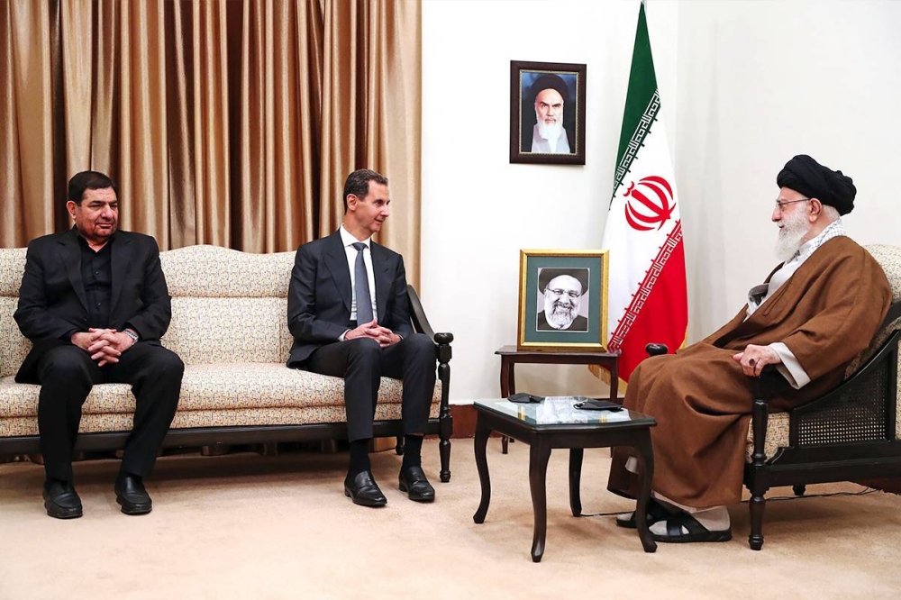 استقبل المرشد الإيراني علي خامنئي في طهران، اليوم، الرئيس السوري بشار الأسد، الذي زار إيران لتقديم واجب العزاء في الرئيس الراحل ابراهيم رئيسي ووزير الخارجية حسين أمير عبداللهيان ومرافقيهما الذين قضوا بتحطم مروحيتهم قرب الحدود مع أذربيجان في وقت سابق من الشهر الجاري. وكان الأسد أبرز المتغيبين عن مراسم الجنازة والتأبين التي أقيمت في طهران وحضرها وزراء خارجية من دول إقليمية، مثل الكويت والسعودية والإمارات، بالإضافة الى رئيس وزراء أرمينيا والرئيس التونسي قيس سعيّد وغيرهم.