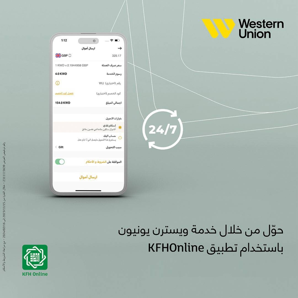 بالتعاون مع «ويسترن يونيون» عبر تطبيق KFHonline