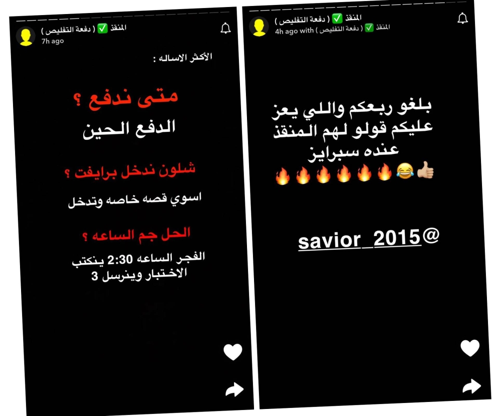 إلى ذلك، لاتزال بعض الحسابات على مواقع التواصل تنشر إعلاناتها الخاصة بتسريب اسئلة الاختبارات، في تحد واضح للوزارة، حتى أنها حددت ساعة النشر بـ 2:30 فجراً، وطالبت من يريد الاستفادة من خدماتها بالدخول بطريقة «البرايفت» لدفع المبالغ المتفق عليها.