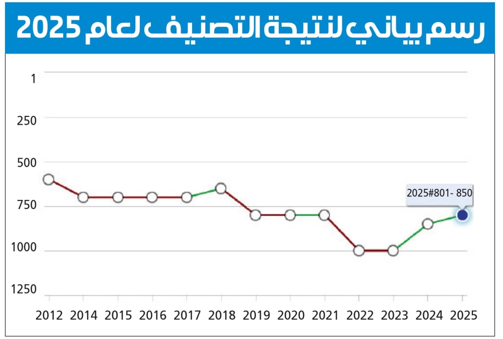 تصنيفها ارتفع إلى المرتبة «801-850» على مستوى العالم