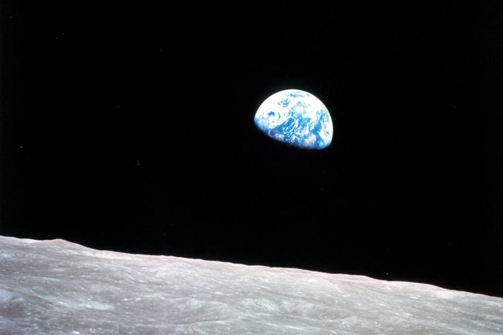 وتُظهر هذه الصورة التي التُقطت عشية عيد الميلاد عام 1968 الكوكب الأزرق وسط الظلام، في حين يبدو سطح القمر في مقدّمها.
