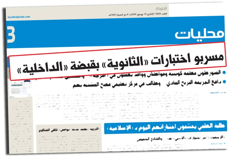 تأكيداً لانفراد «الجريدة» في عددها أمس، وما أثبتته بيانات وزارتي الداخلية والتربية حول ضبط مسربي اختبار الثانوية العامة، كشفت مصادر أمنية وتربوية، لـ «الجريدة»، وقائع التسريب الذي أفضى إلى توقيف 10 أشخاص بينهم 4 موظفين يعملون في «التربية» و6 آخرين يديرون حسابات على مواقع التواصل.