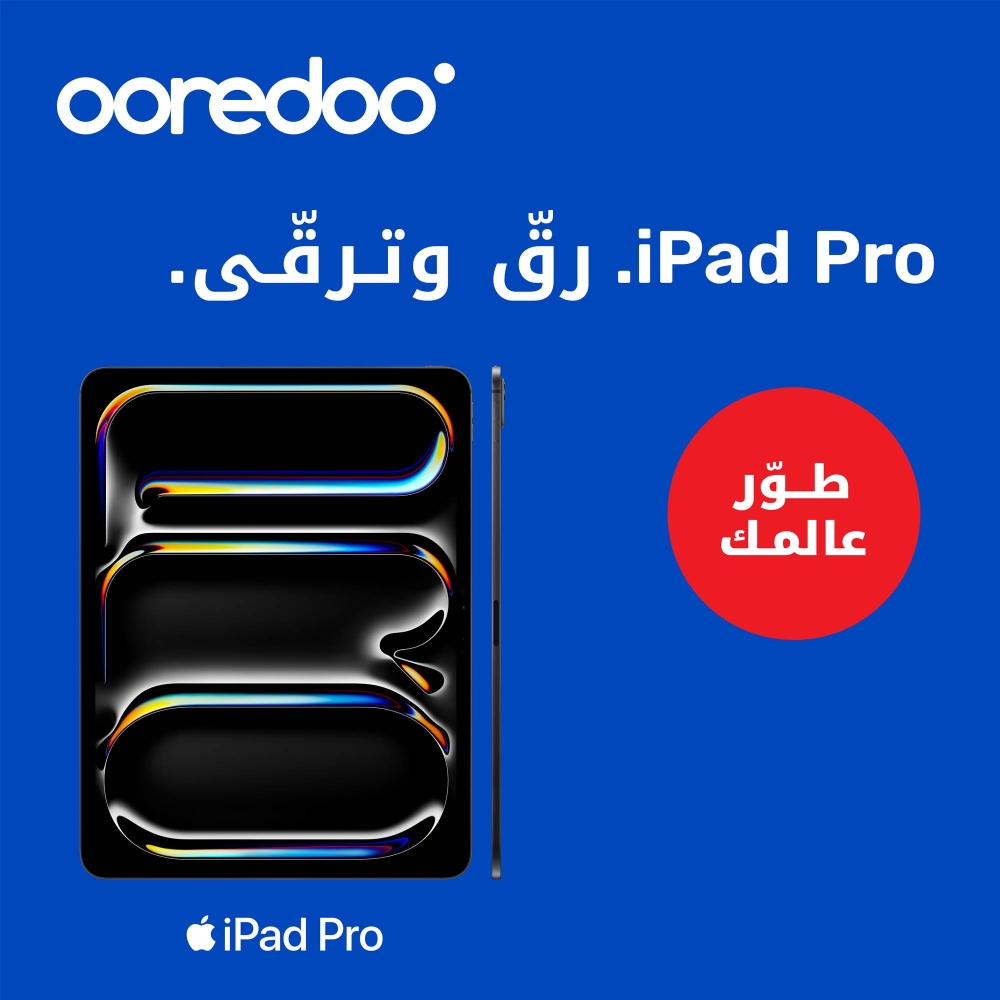 ومن خلال نهجها الذي يركز بشكل أساسي على متطلبات العملاء، تقدم Ooredoo المجموعة الحديثة بألوان مذهلة ومتنوعة، إذ توفر iPad Pro باللون الفضي والأسود الفلكي الجديد، وإصداري iPad Air مقاس 11 و13 بوصة باللون الأزرق الجديد مع لمسات أرجوانية، واللون الفلكي النجمي، والرمادي الفلكي، ليلبي هذا التنوع في الألوان نطاقاً واسعاً من التفضيلات الجمالية، مما يعزز الاستخدام الشخصي والعملي لهذه الأجهزة.