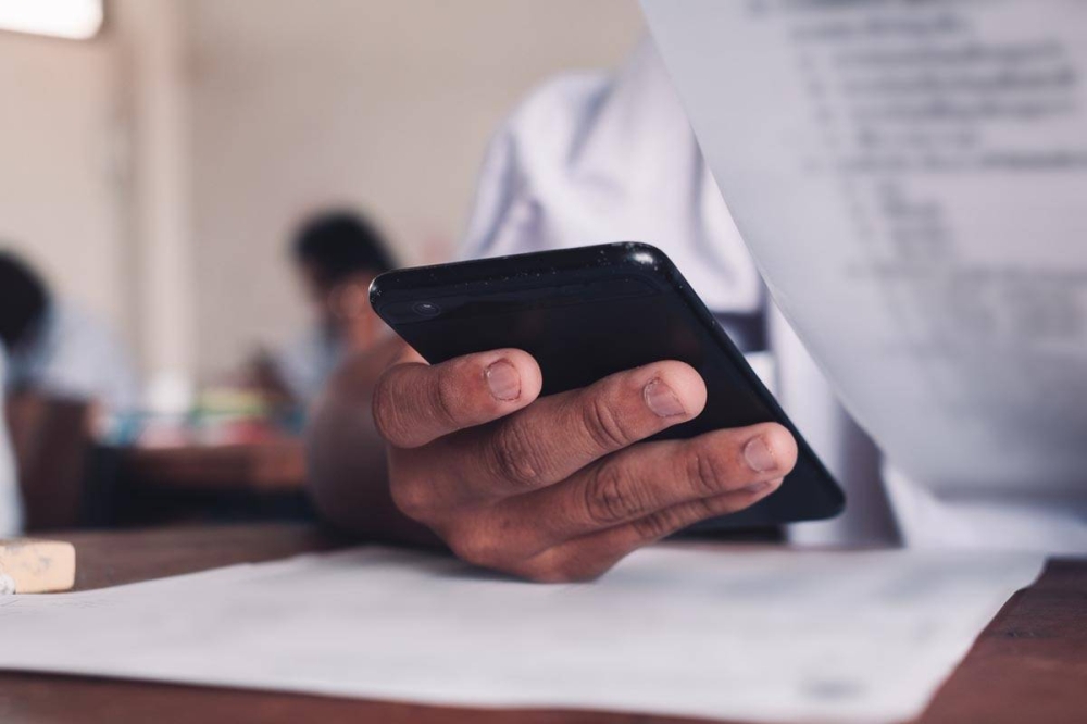 كان يستعمل هاتفاً نقالاً يحتوي على دروس خاصة بالمادة