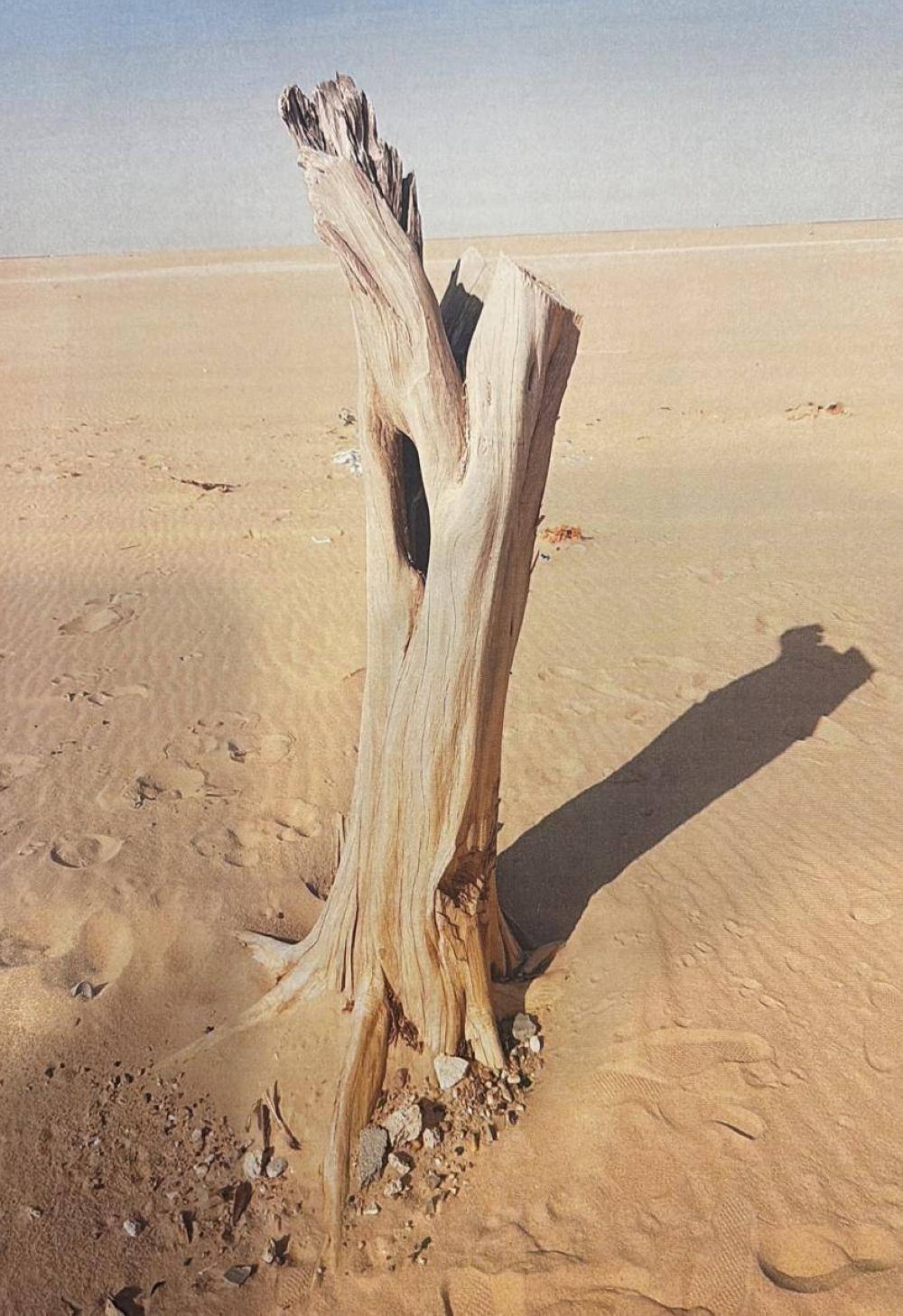 لا أدري إذا بقي الجذع منتصباً أم أزيل، لأن الصورة التي التقطها ابن عم الدكتور راشد هو فهيد محمد الحيمر عام 2021 أيام جائحة كورونا عندما ذهب إلى هناك ليتفقدها ويطمئن عليها وإذا بها تبدو يتيمة لا أحد يهتم بها أو يسقيها قطرة ماء أو يعمل على إنقاذها من الموت البطيء.