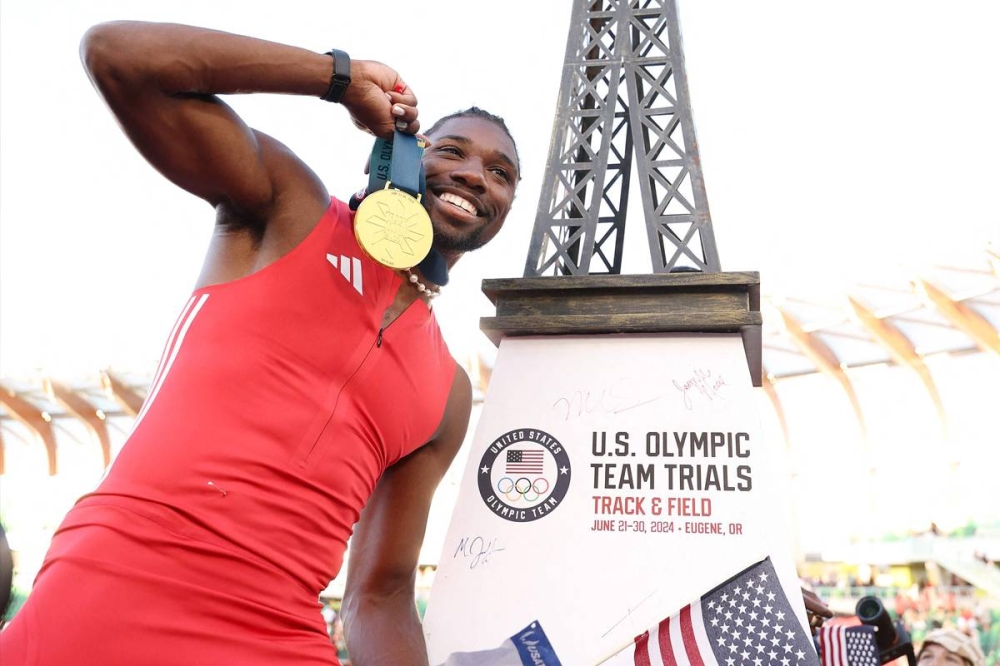 ضمن العداء الأميركي نواه لايلز، المتوج بثلاث ذهبيات في بطولة العالم في بودابست العام الماضي، مشاركته في أولمبياد باريس بفوزه بسباق 100 متر، معادلا رقمه الشخصي خلال التصفيات الأميركية المقامة في أوجين.