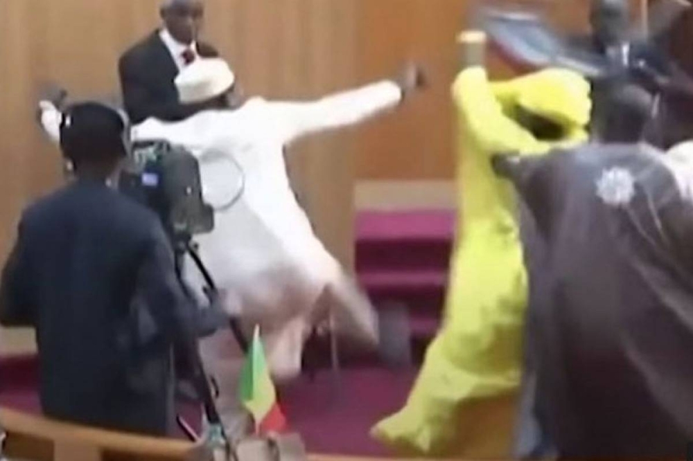 بدورها، هاجمت ندياي النائب ورمته بكرسي، لتسود الفوضى الجلسة، ويتبادل البرلمانيون اللكمات والضربات، قبل تعليق الجلسة.
