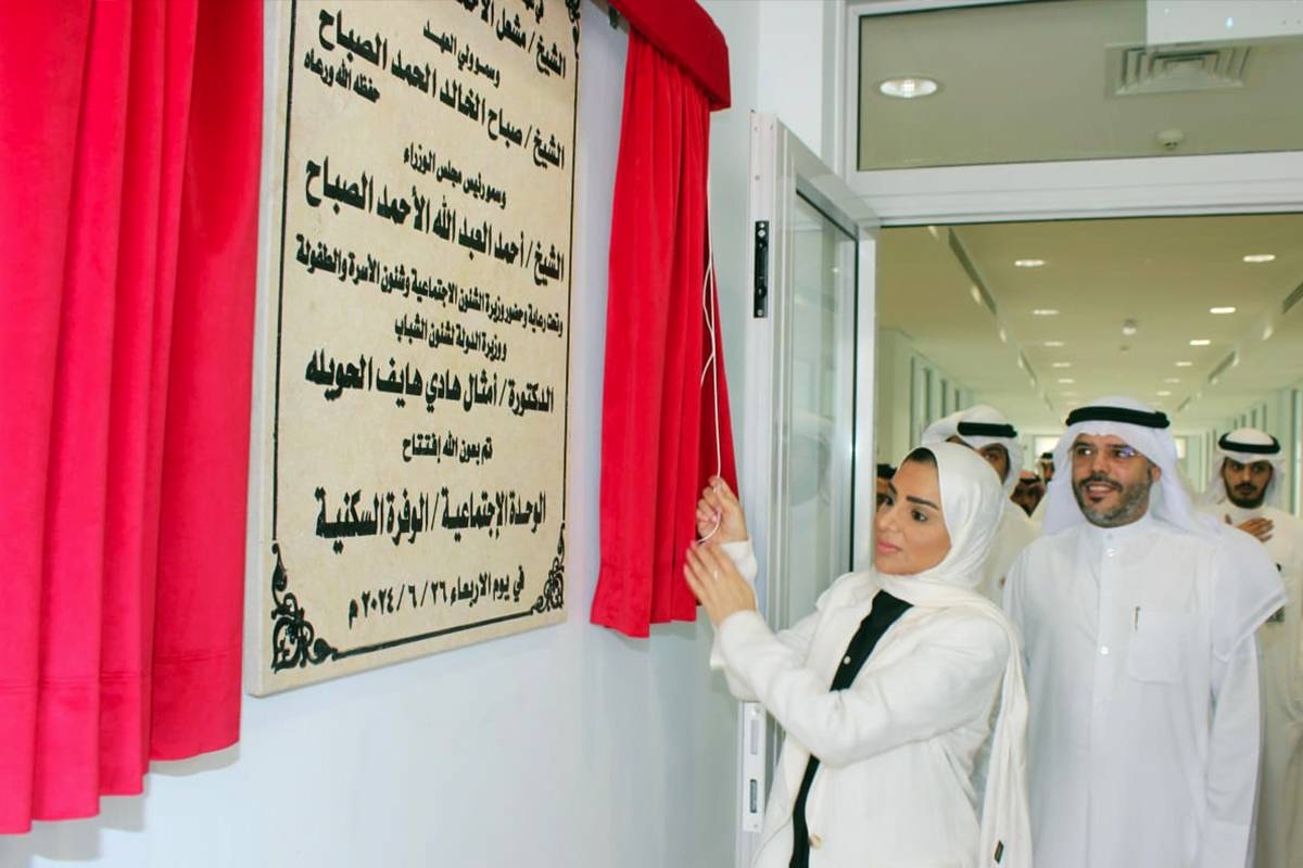 افتتحت وزيرة الشؤون الاجتماعية وشؤون الأسرة والطفولة وزيرة الدولة لشؤون الشباب د. أمثال الحويلة وحدة الوفرة السكنية الاجتماعية بمنطقة الوفرة السكنية بحضور وكيل الوزارة بالإنابة د. خالد العجمي.