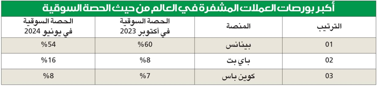 بينما زادت حصة «كوين باس» بنسبة 1 في المئة فقط خلال تلك الفترة، وما زالت «بينانس» تتصدر قائمة أكبر بورصات العملات المشفرة في العالم رغم تراجع حصتها إلى 54 بالمئة في مارس من 60 في المئة خلال أكتوبر.