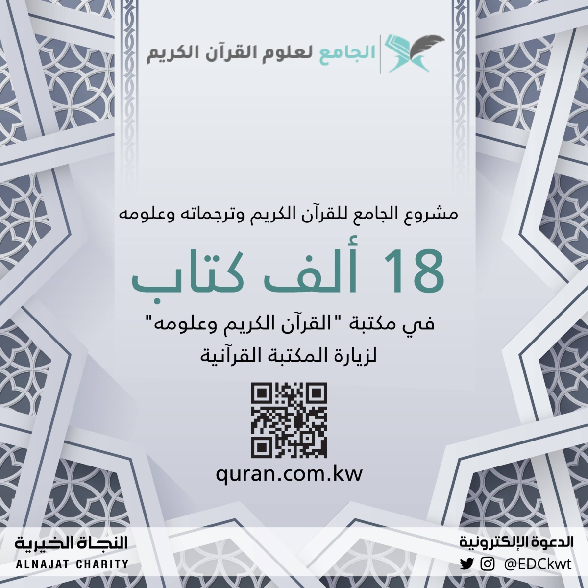 قالت مديرة لجنة الدعوة الإلكترونية التابعة لجمعية النجاة الخيرية، إيمان العلي، إن مشروع مكتبة «الجامع للقرآن الكريم وترجماته وعلومه» التابع للجنة يحتوي حالياً على أكثر من 18 ألف كتاب متخصص في علوم القرآن.