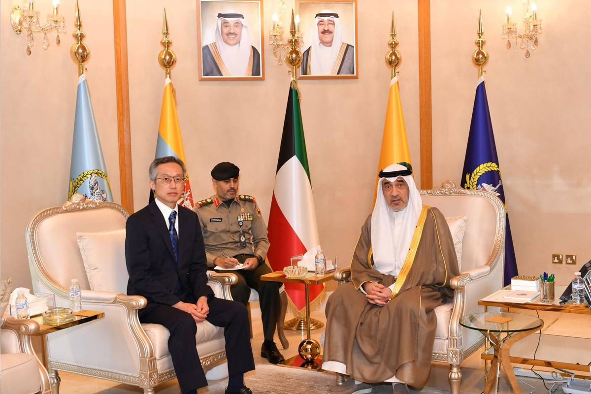 استقبل النائب الأول لرئيس مجلس الوزراء وزير الدفاع وزير الداخلية، الشيخ فهد اليوسف، بمكتبه في وزارة الدفاع عدداً من سفراء الدول المعتمدين لدى البلاد، كل على حدة، وهم سفير اليابان مورينو ياسوناري، وسفير روسيا الاتحادية فلاديمير جيلتوف، وسفير إيطاليا لورينزو موريني، وسفير الصين تشانغ جيانوي.