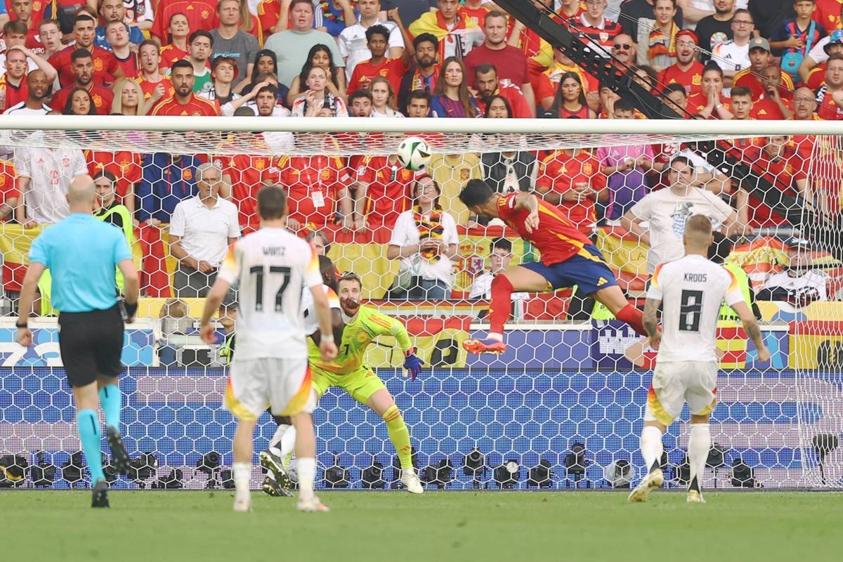 افتتح البديل داني أولمو التسجيل لإسبانيا (51)، قبل أن تعادل ألمانيا قبل دقيقة واحدة من نهاية الوقت الأصلي عبر البديل الآخر فلوريان فيرتس (89)، لكن كلمة الفصل كانت لميرينو (120).
