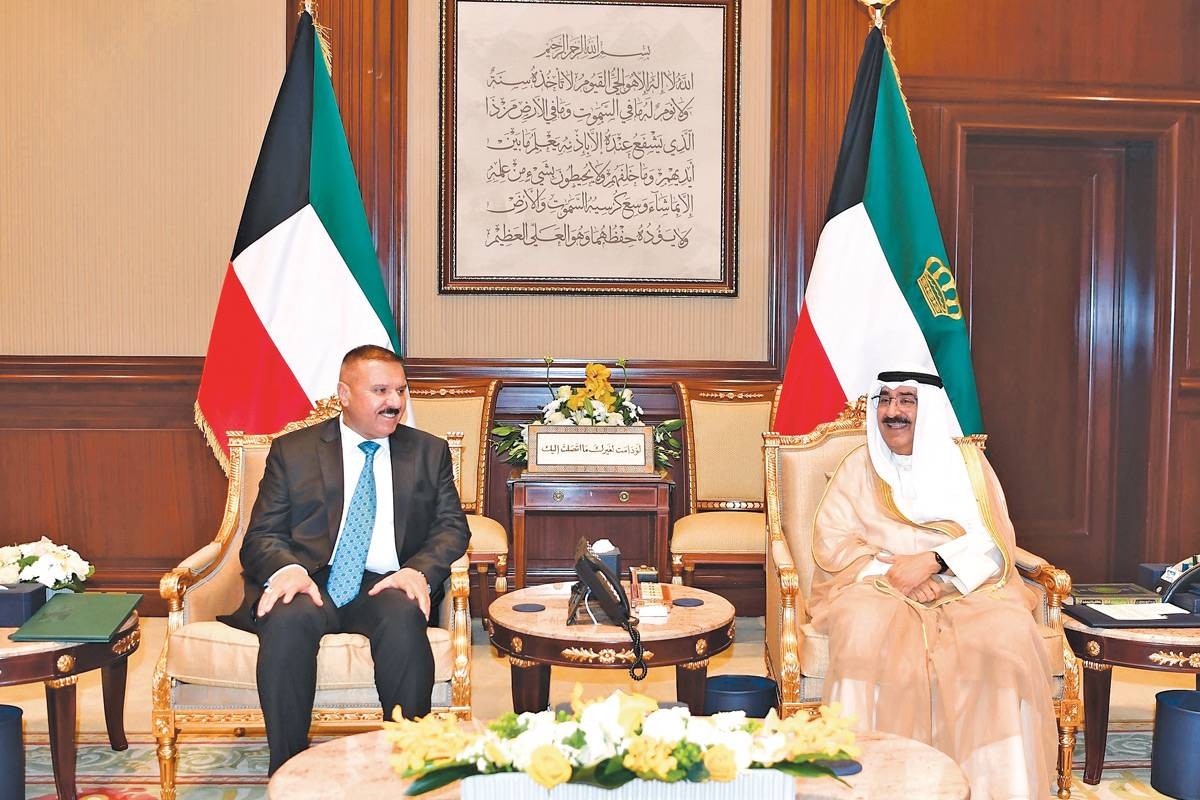 واستقبل سموه، النائب الأول لرئيس مجلس الوزراء وزير الدفاع وزير الداخلية، الشيخ فهد اليوسف، ووزير الداخلية في جمهورية العراق الشقيق، الفريق الركن عبدالأمير الشمري والوفد المرافق، بمناسبة زيارته الرسمية للبلاد.