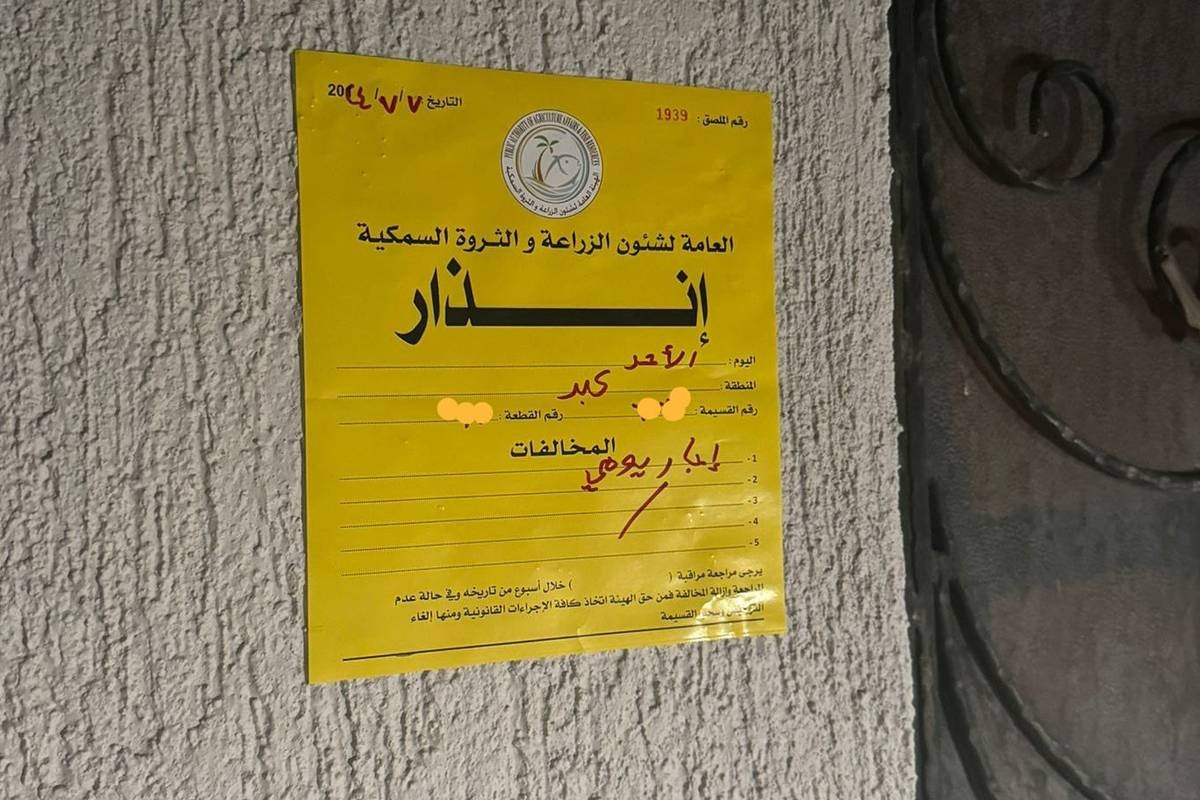 إنذار «جواخير» مخالفة في كبد