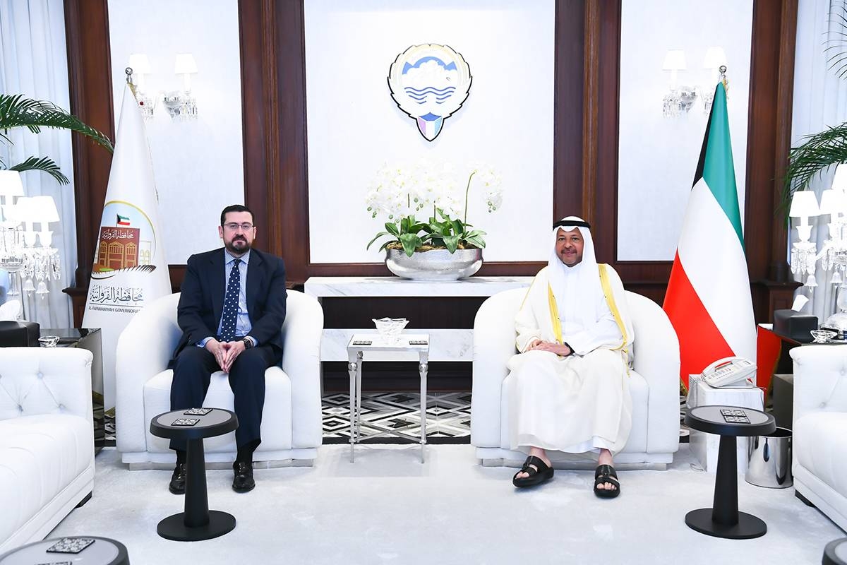 استقبل محافظ الفروانية، الشيخ عذبي الناصر، في مكتبه بديوان المحافظة، صباح اليوم ، سفير إسبانيا لدى الكويت ميغيل أغيلار.