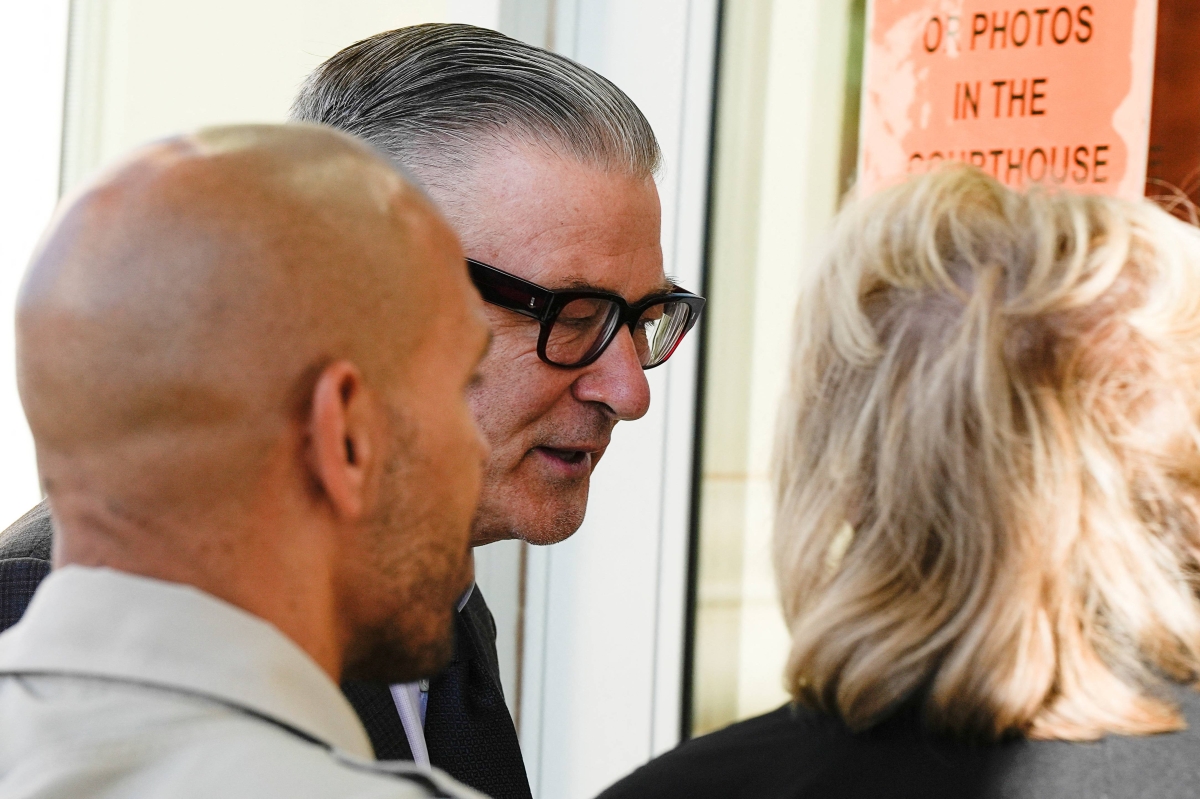 وكان بالدوين قد حضر الاثنين إلى محكمة سانتا فيه حيث انعقدت جلسة استماع أولية، وكان يرتدي بزة داكنة وربطة عنق مخططة، وكان يدوّن ملاحظات مفصلة على دفتر صغير.