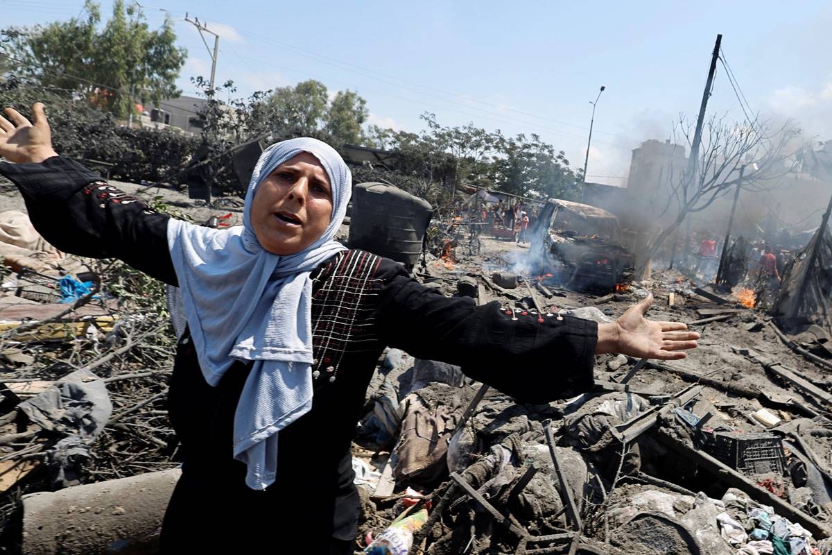 ووسط اتهامات لرئيس الوزراء الإسرائيلي بنيامين نتنياهو بمحاولة تفخيخ إتمام الصفقة عبر طرح «مطالب جديدة»، تسببت المجزرة المروعة في انتشار جثامين المدنيين على الطرقات، نتيجة حزام ناري إسرائيلي استهدف خيام النازحين في المواصي بخان يونس.