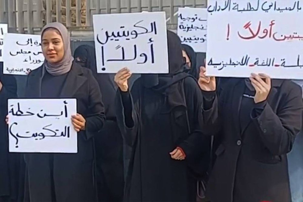 اعتصم عدد من الكويتيات خريجات اللغة الإنكليزية، صباح اليوم، أمام مبنى وزارة التربية للمطالبة بقبولهن معلمات في سلك التدريس.