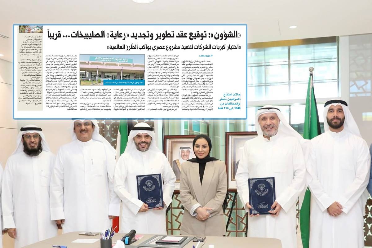 تأكيداً لخبر «الجريدة» المنشور في عددها الصادر 18 الجاري بعنوان («الشؤون»: توقيع عقد تطوير وتجديد «رعاية» الصليبيخات... قريباً)، شهدت وزيرة الشؤون الاجتماعية، وشؤون الأسرة والطفولة، وزيرة الدولة لشئون الشباب د. أمثال الحويلة، توقيع لجنة المشروعات التعاونية الوطنية، ممثلة في رئيسها وكيل الوزارة بالإنابة د. خالد العجمي، عقد الخدمات الهندسية لأعمال تصميم المخطط الهيكلي وصيانة مباني مجمع دور الرعاية الاجتماعية بمنطقة الصليبيخات، وذلك بحضور أعضاء اللجنة، وممثلي شركة (SSH) انترناشيونال للإستشارات الهندسية المنفذة للمشروع.