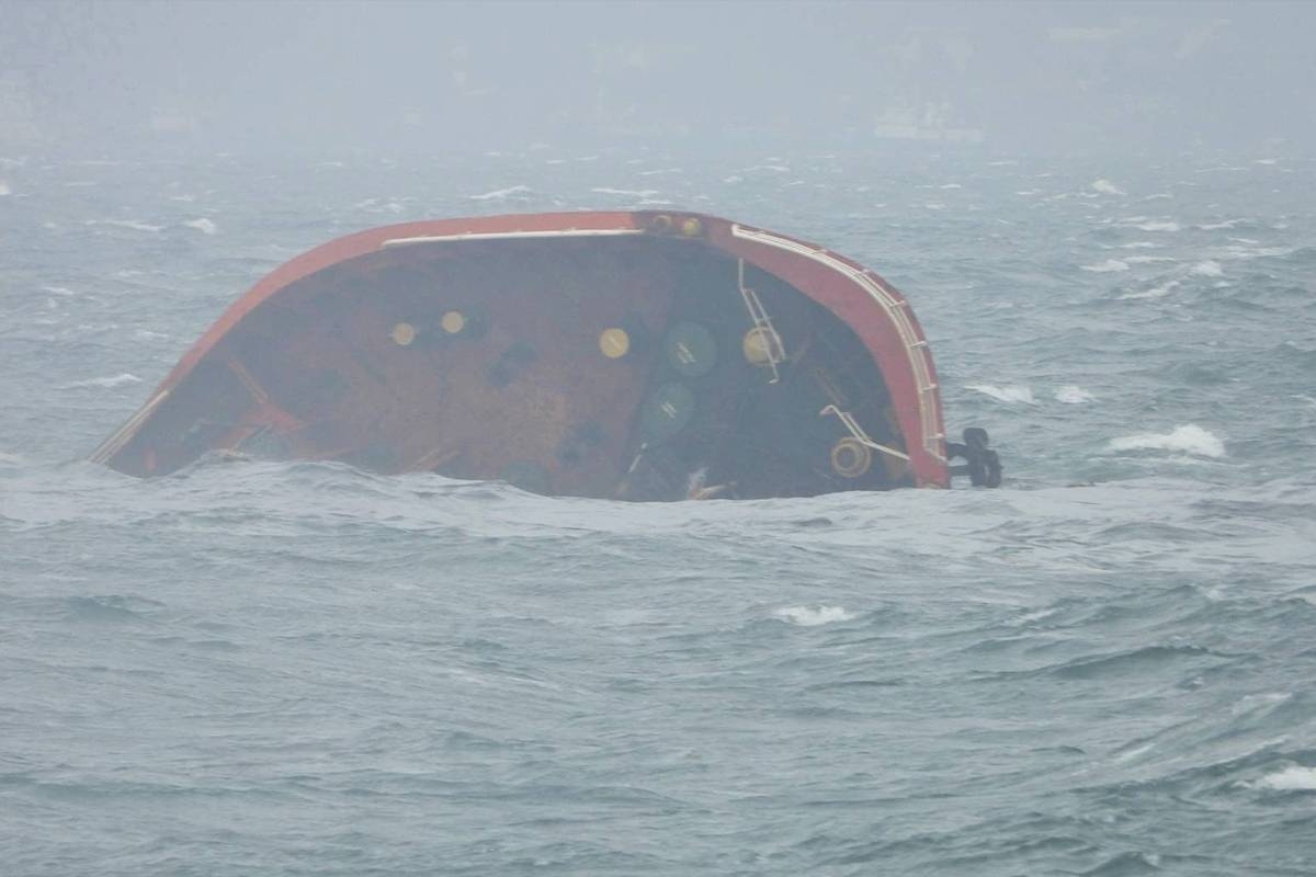 وأظهرت صورة نشرها خفر السواحل السفينة مغمورة بالكامل تقريبًا في البحر الهائج.