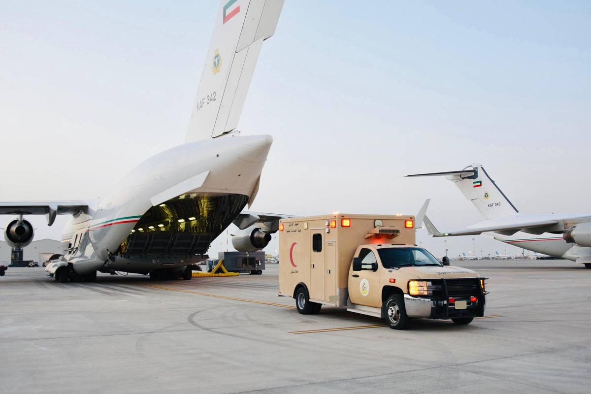 وقالت رئاسة الاركان العامة للجيش الكويتي في بيان صحفي اليوم الخميس إن التمرين يُحاكي سيناريو نقل المرضى والمصابين بطائرات النقل الجوي C17 و C130.