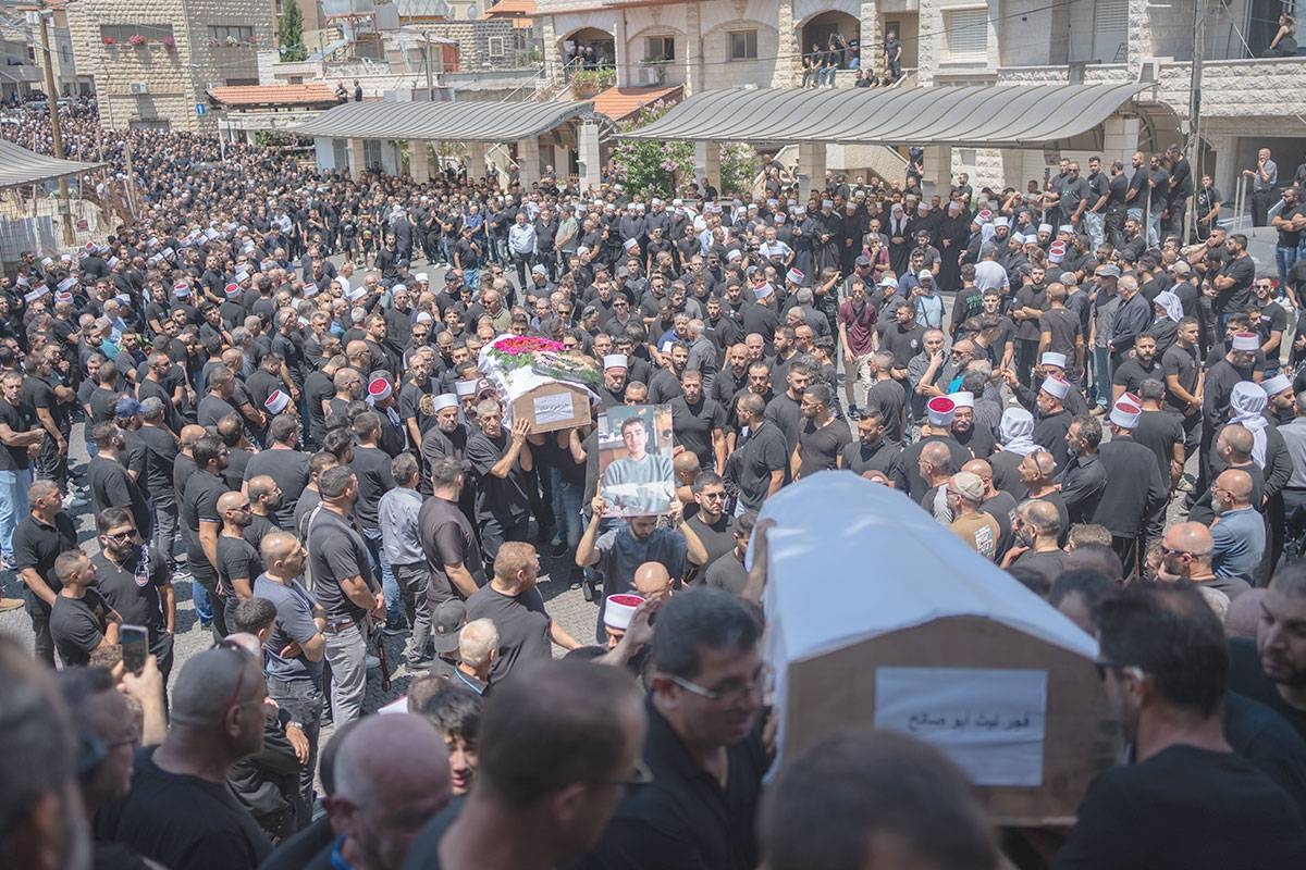 دروز يشيعون ضحايا هجوم مجدل شمس بالجولان المحتل (رويترز)