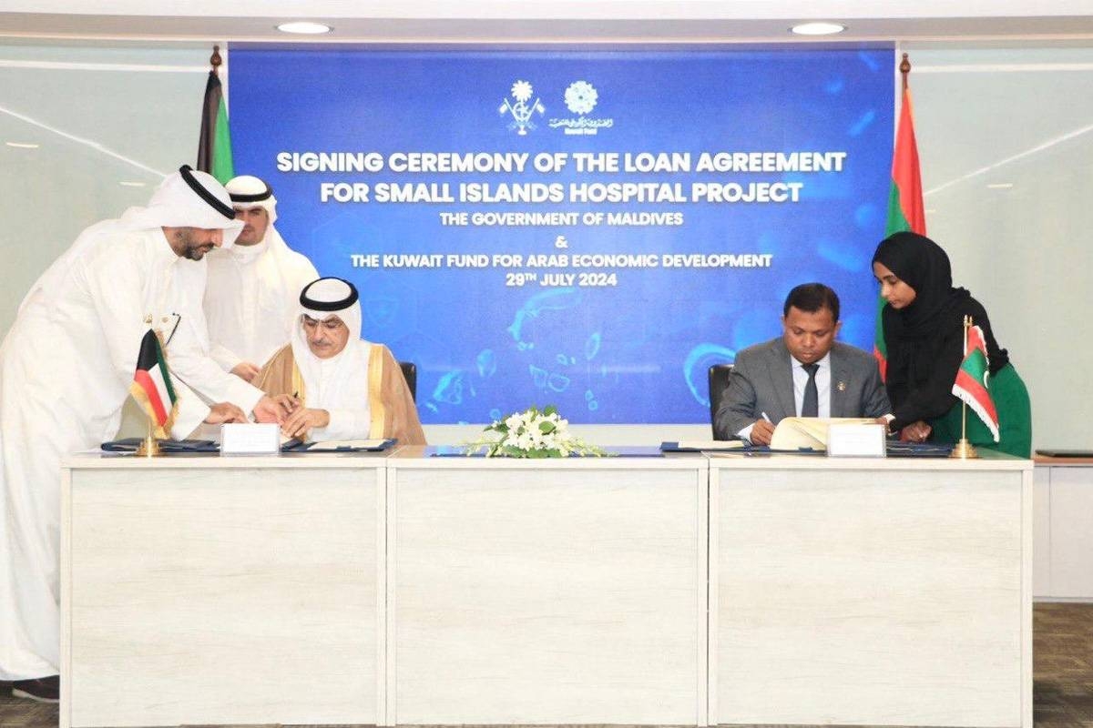 وقع الصندوق الكويتي للتنمية الاقتصادية العربية، اليوم، اتفاقية قرض لجمهورية المالديف بقيمة 3 ملايين دينار، للإسهام في تمويل مشروع مستشفيات الجزر الصغيرة هناك. ووقع الاتفاقية المدير العام للصندوق بالوكالة وليد البحر، ووزير المالية في المالديف محمد شفيق.