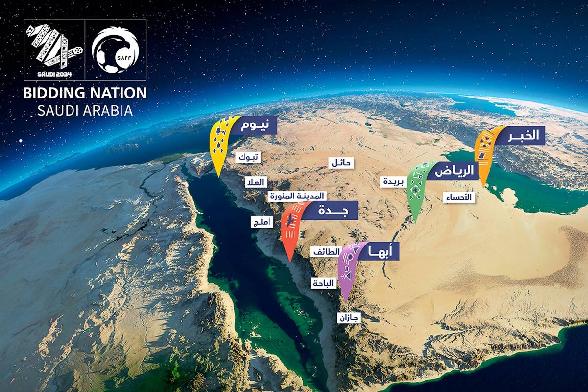 ويكشف ملف الترشّح بشكل حصري عن المخطط العام لكأس العالم FIFA™ الذي ستستضيفه المملكة في 5 مدن رئيسة، هي الرياض، وجدة، والخبر، وأبها، إضافة إلى نيوم، التي تمثّل أحد أهم المشاريع الكبرى لمدن المستقبل في المملكة والعالم بأسره.