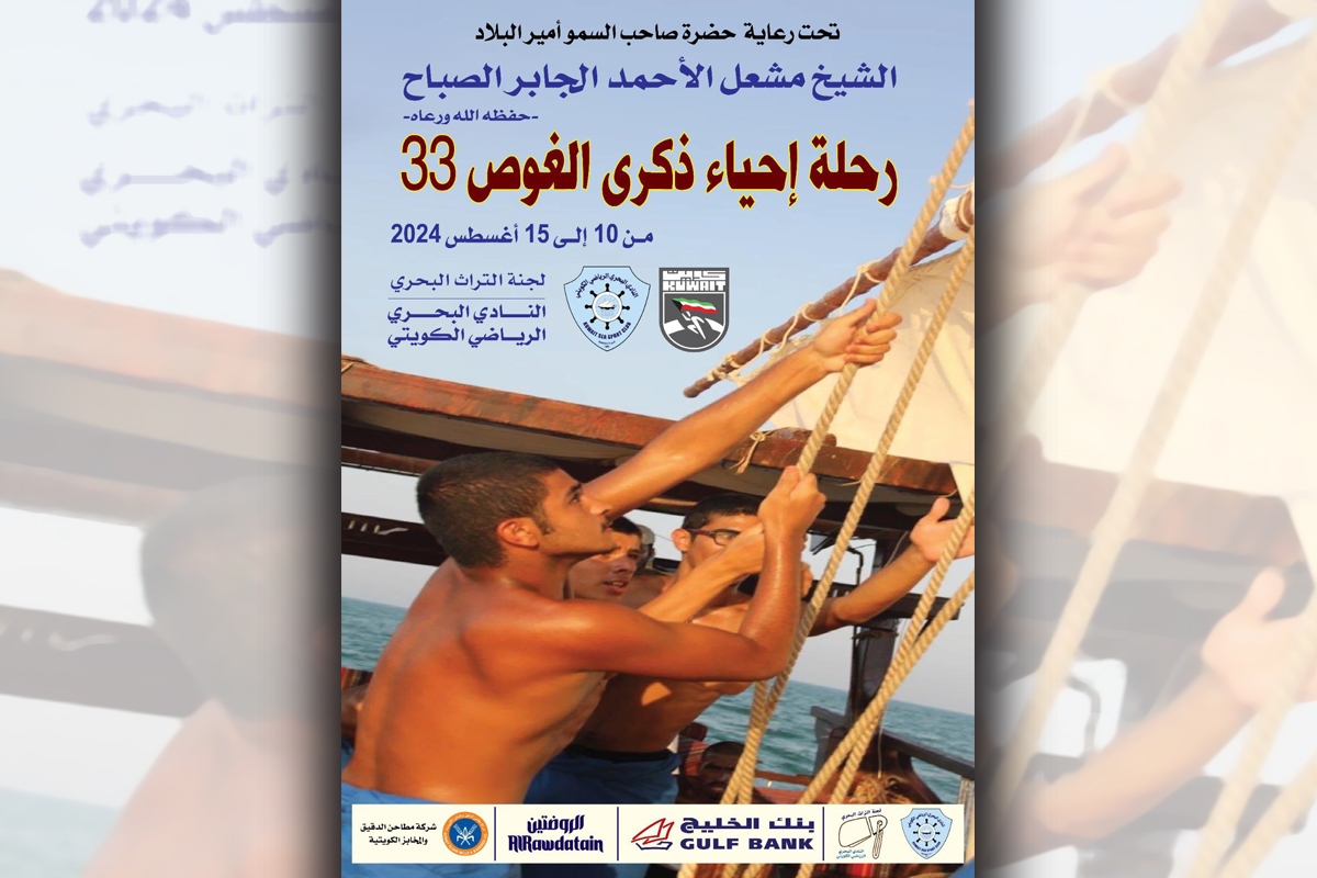 وأشار أمين السر العام في النادي خالد الفودري إلى أن عدد المشاركين بحدود 150 شابا كويتيا، تتراوح أعمارهم بين 15 و20 عاما، سيرسمون لوحة معبرة عن مدى اعتزازهم بتراث هذا الوطن الغالي وبتضحيات الرعيل الأول من الآباء والأجداد، مضيفا أن عدد سفن الغوص المشاركة 4 سفن مهداة من سمو الأمير الراحل الشيخ صباح الأحمد، وهي من نوع سنبوك وشوعي، وأطلقت عليها أسماء نواخذة كبار كانت لهم بصمات كبيرة في رحلات الغوص، إلى جانب سفينة باسم بنك الخليج.