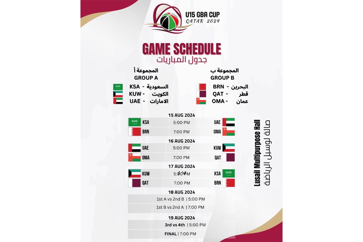 أوقعت قرعة بطولة الخليج للناشئين لكرة السلة تحت 15 سنة، منتخب الكويت في المجموعة الأولى للبطولة ستقام في العاصمة القطرية الدوحة خلال الفترة من 15 حتى 19 أغسطس الجاري إلى جانب منتخبات السعودية والإمارات، فيما ضمت المجموعة الثانية منتخبات البحرين وقطر وعُمان.