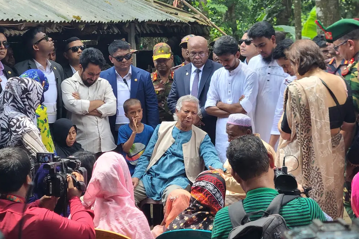 وحث يونس على الهدوء، خلال زيارة لمدينة رانغبور في الشمال لتقديم العزاء في الطالب أبوسعيد، وهو أول طالب قُتل في الاضطرابات الشهر الماضي.