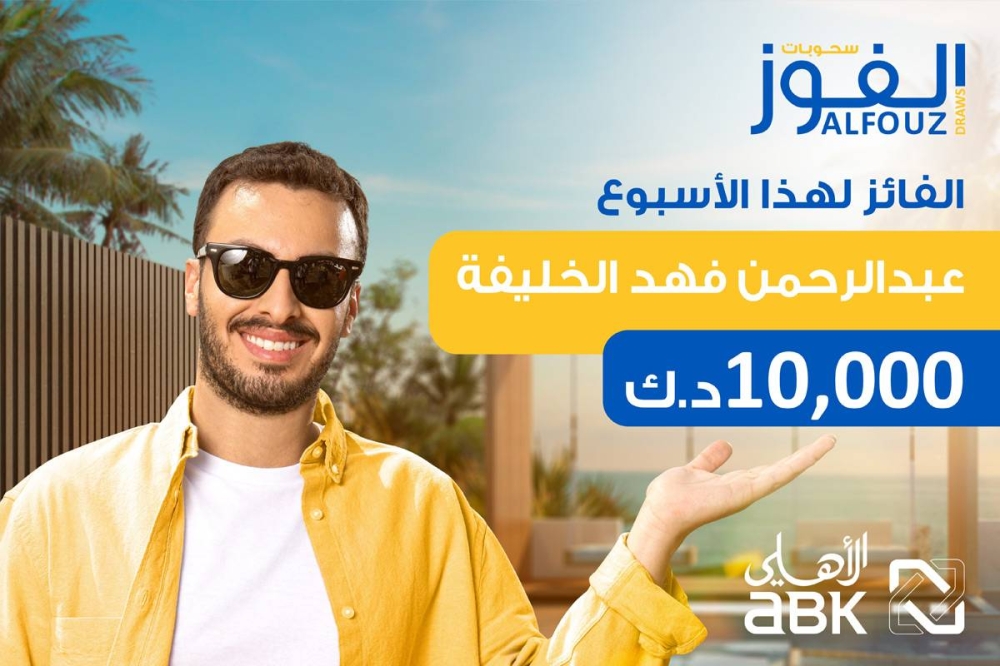 أعلن البنك الأهلي الكويتي فوز عبدالرحمن فهد الخليفة في السحب الأسبوعي لحساب «الفوز» للجوائز، بجائزة نقدية قدرها 10000 دينار، الذي أقيم تحت إشراف وزارة التجارة والصناعة، وتم الإعلان عن اسم الفائز 5 ديسمبر 2022.