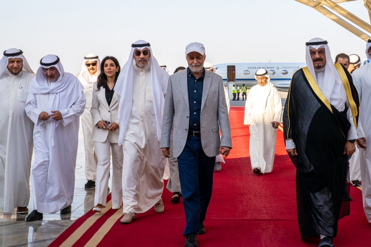 وكان في مقدمة مستقبليه لدى وصوله إلى أرض المطار رئيس مجلس الوزراء سمو الشيخ أحمد العبدالله، والنائب الأول لرئيس مجلس الوزراء وزير الدفاع وزير الداخلية الشيخ فهد اليوسف، ونائب رئيس مجلس الوزراء وزير الدولة لشؤون مجلس الوزراء شريدة المعوشرجي، وعدد من الوزراء وكبار المسؤولين في الدولة وديوان رئيس مجلس الوزراء.