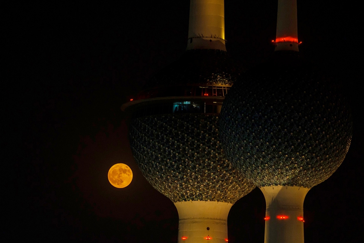 تجلى القمر ساطعا ليل أمس في سماء الكويت، مشكلاً ما يعرف بـ «القمر العملاق» الذي لا يأتي إلا نادراً، حيث نسج في طلوعه دائرة متوهجة كأنه يريد أن يسجل زيارة سريعة تصافح بضوئها أبصار الحالمين.