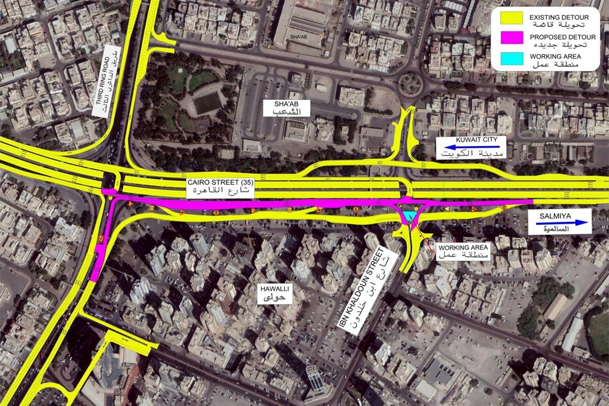 أعلنت الهيئة العامة للطرق والنقل البري بالتعاون مع الإدارة العامة للمرور عن افتتاح تحويلة مرورية للقادم من الدائري الثالث من «طريق 40» باتجاه شارع القاهرة لإستكمال أعمال الطرق النهائية بالمنطقة وذلك فجر يوم الخميس الموافق 22 أغسطس الجاري.