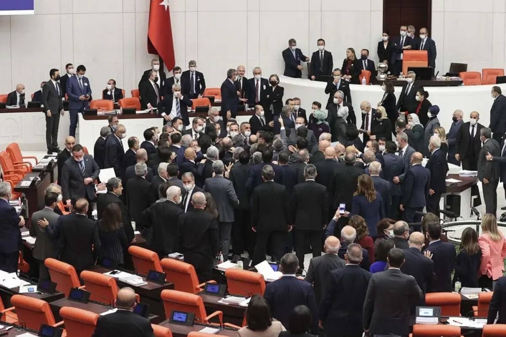 ونشب العراك خلال مناقشة ميزانية 2023، ولم يعلِّق الحزب، الذي يتزعمه الرئيس رجب طيب إردوغان، فوراً على الحادث.