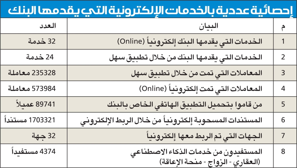وذكرت الخشتي أنه من خلال الخطة الطموحة التي وضعتها ادارة البنك وبسواعد شباب الكويت المخلصين أصبحت 99 في المئة من خدمات البنك تقدم إلكترونيا من خلال البوابة الالكترونية للبنك والتطبيق الهاتفي الخاص به على مدار الساعة طوال ايام الاسبوع بسهولة ويسر، مؤكدة أن البنك كان من اوائل المؤسسات التي انضمت للتطبيق الحكومي «سهل» وأصبح اليوم يقدم 24 خدمة من خلال تطبيق سهل، وبلغ عدد المستفيدين من خدمات البنك بتقنية الذكاء الاصطناعي أكثر من 4000 مستفيد.البنك تلقي دعوة للمشاركة بقمة مجتمع المعلومات في جنيف مارس المقبل
