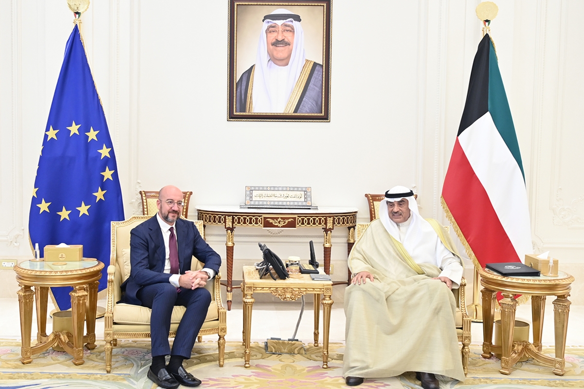 من جهته، استقبل رئيس مجلس الوزراء سمو الشيخ أحمد العبدالله، في قصر بيان اليوم، رئيس المجلس الأوروبي والوفد المرافق له، وتم خلال اللقاء استعراض العلاقات الثنائية المتميزة بين الكويت والاتحاد الأوروبي وسبل تعزيزها وتوسيع آفاق التعاون في مختلف المجالات التي تخدم مصالح الجانبين، بالإضافة إلى تبادل وجهات النظر حول عدد من القضايا الإقليمية والدولية.