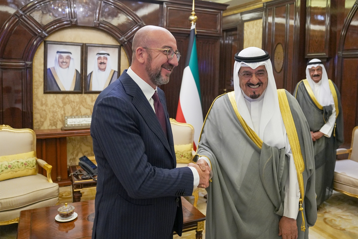 استقبل سمو أمير البلاد الشيخ مشعل الأحمد، بقصر بيان صباح اليوم، رئيس المجلس الأوروبي شارل ميشيل والوفد المرافق، حيث اطلع سموه على أهم القضايا المطروحة على جدول أعمال القمة الأولى بين دول مجلس التعاون الخليجي والاتحاد الأوروبي التي ستعقد في أكتوبر المقبل بمدينة بروكسل.