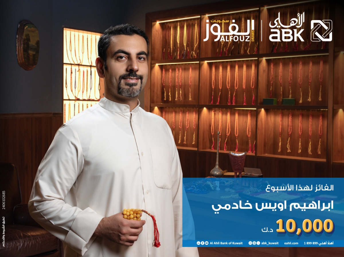 أعلن البنك الأهلي الكويتي فوز ابراهيم أويس خادمي بجائزة 10 آلاف دينار، في السحب الأسبوعي لحساب الفوز الذي أجراه في يوم الاثنين 9 الجاري بحضور ممثل وزارة التجارة والصناعة، لضمان أعلى قدر من الشفافية على النتائج.