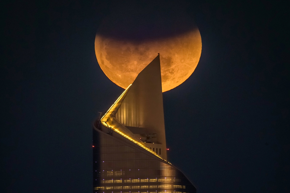 وأضاف المركز، في بيان نشرته «كونا»، أن حالة الخسوف ستصادف اكتمال القمر، حيث يمر القمر في شبه ظل الأرض، ثم في ظل الأرض، حيث يغمق لونه ويصير داكناً أثناء عبوره شبه ظل الأرض، ثم يظلم جزء صغير من الطرف الأيمن لقرص القمر في ذروة هذا الخسوف.