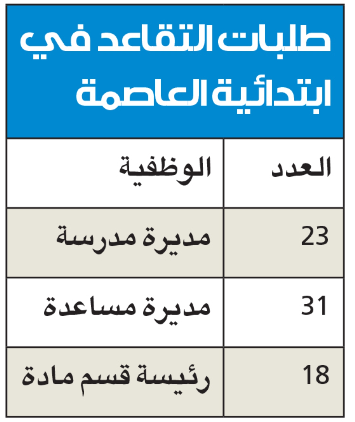 72 مديرة ابتدائية وإشرافية تقدمن بطلب الإحالة في «تعليمية العاصمة» وحدها