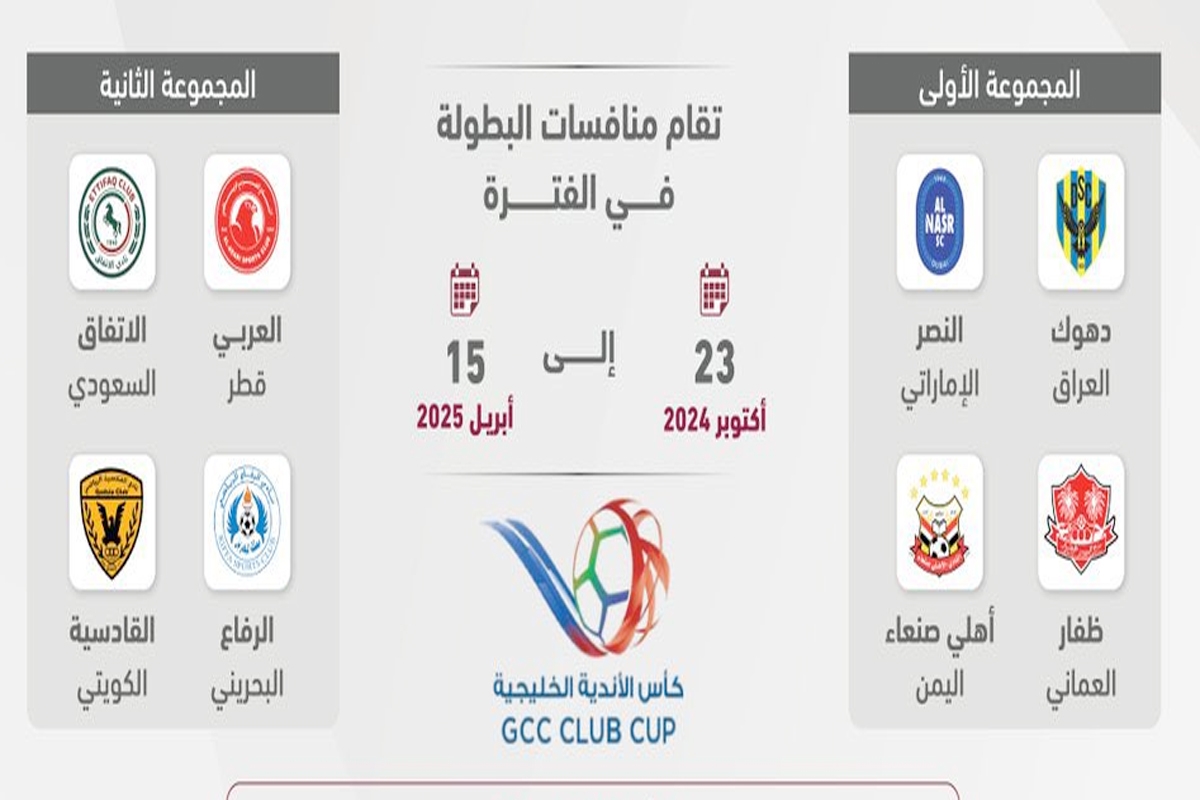 وأسفرت القرعة عن وقوع دهوك العراقي والنصر الإماراتي وظفار العماني وأهلي صنعاء اليمني في المجموعة الأولى.