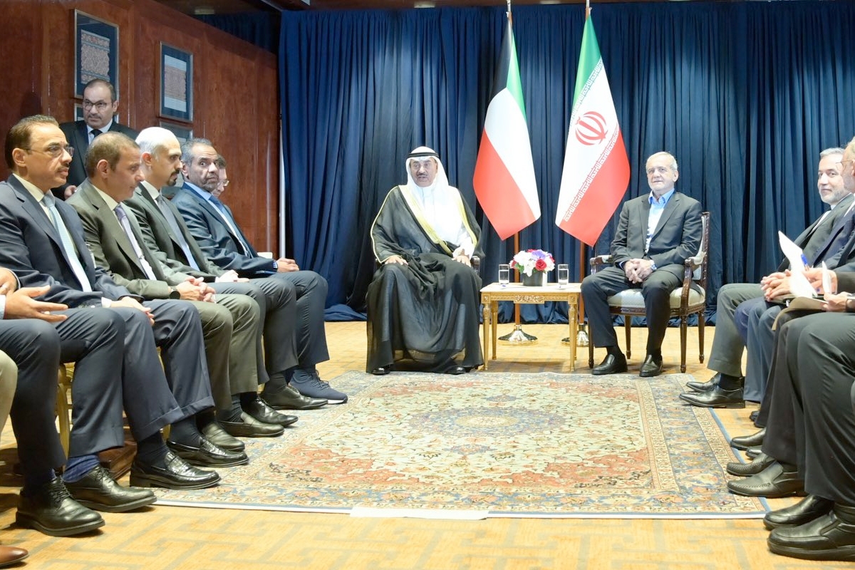 التقى ممثل سمو أمير البلاد الشيخ مشعل الأحمد الجابر الصباح، سمو ولي العهد الشيخ صباح خالد الحمد الصباح، الرئيس الإيراني مسعود بزشكيان على هامش أعمال اجتماعات الدورة الـ79 للجمعية العامة للأمم المتحدة في مقر إقامته بمدينة نيويورك في الولايات المتحدة الأمريكية.