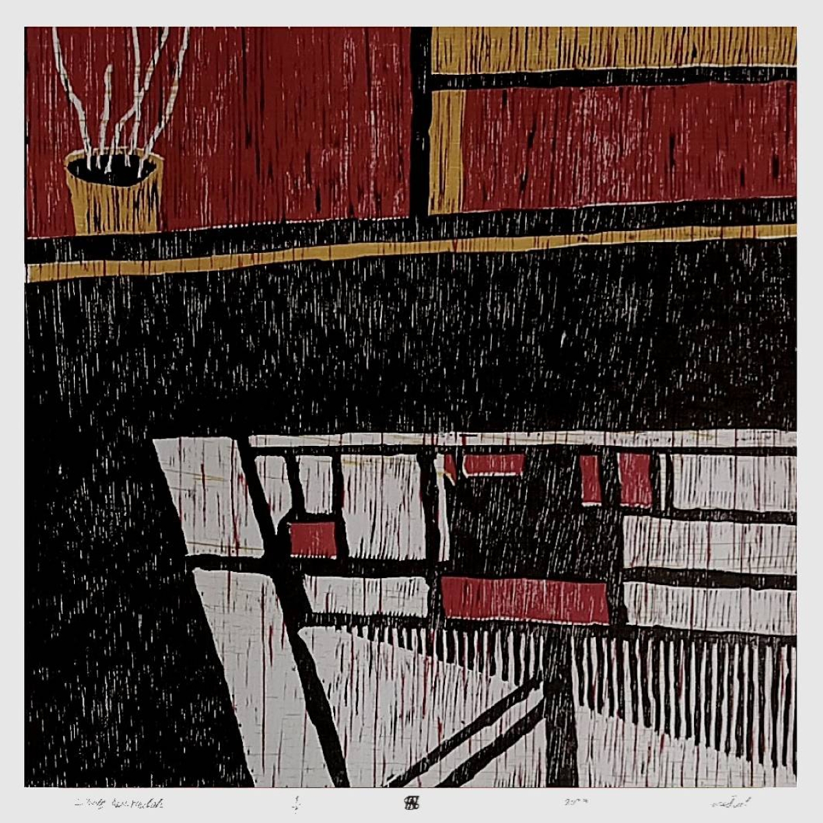 - هي تجربة فنية عبارة عن 14 عملا فنيا، يمثّل كل عمل مشهدًا انزوائيًا أو (انعزاليًا)، جراء ما خلّفته جائحة كوفيد - 19 من تأثيرات اجتماعية ونفسية عميقة في الوجدان والنفس والخيال وكذلك الفكر، حيث غيّرت كثيرًا من نظرتنا للوجود والموجودات، بل للحياة وجدواها ومعناها، فقد أجبرت الجائحة الفنانين على الانزواء في منازلهم ومراسمهم بعد التقاطهم لمشاهد الشوارع شبه الخالية من المارة والحياة، والمقاهي والمحال الخاوية من زبائنها، والأبنية المغلقة على ساكنيها المرتعبين من القاتل غير المرئي المتربص بهم، حيث أصبحت تلك المَشاهد المحملة بالمضامين النفسية القاتمة هي المسيطرة بصريًا ووجدانيًا، مع وجود الأمل في انفراجة قريبة. والتجربة الفنية منفذة بواسطة فن الحفر والطباعة البارزة الملونة من القالب الخشبي الطولي المقطع، وهي التقنية الفنية الأقرب إلى قلبي من بين جميع التقنيات الأخرى التي مارستها، وخصوصا أنها تتسم وتتميز بملمس يربط العمل الفني بالطبيعة بشكل فريد، وهو الملمس الطبيعي غير المصطنع لألياف الخشب. كما يسعدني أن أشير إلى أن لهذه الجائزة قيمة خاصة جدا بالنسبة لي، على المستوى المهني، لأنها في تخصصي الأكاديمي الدقيق، وهو تخصص (الطبعة الفنية).