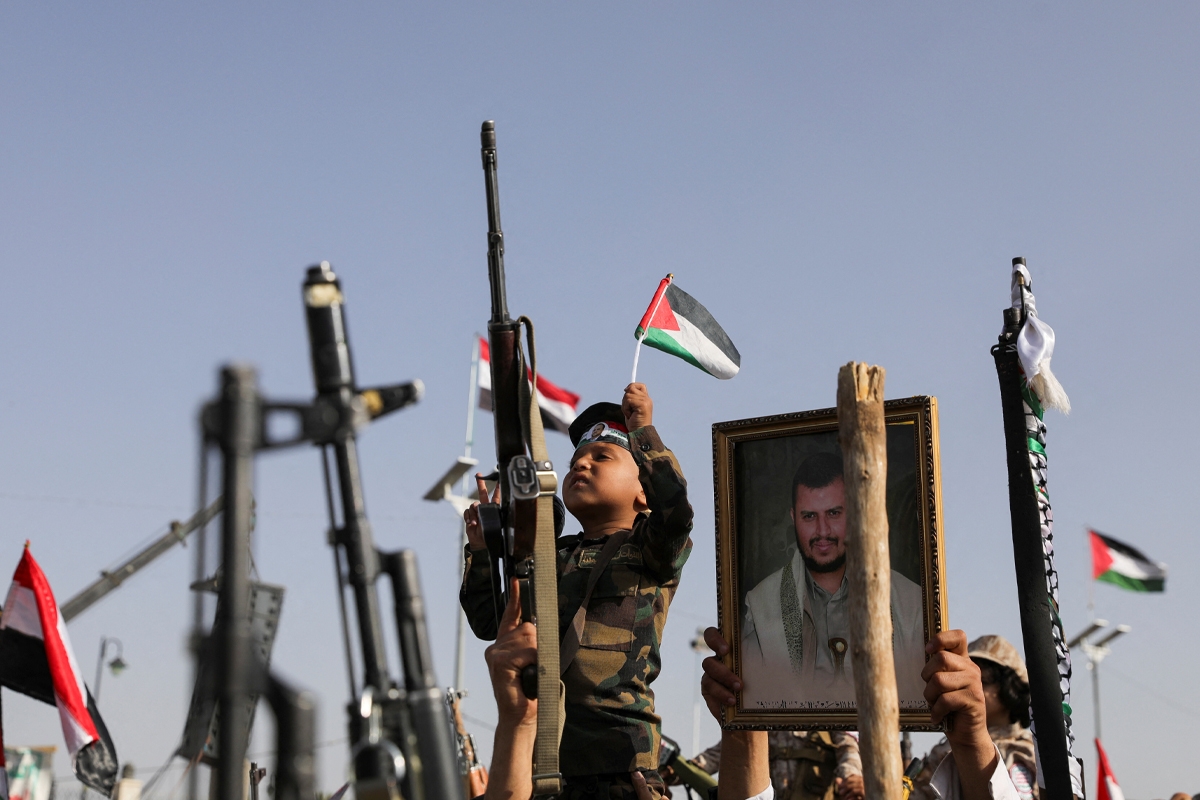 وجاء في البيان «على مدار العام الماضي، ظل الحوثيون يعملون بتوجيه وتمويل من إيران، وبالتعاون مع جماعات عراقية مسلحة، لمهاجمة دولة إسرائيل وزعزعة استقرار المنطقة، والتأثير على حرية الملاحة العالمية».