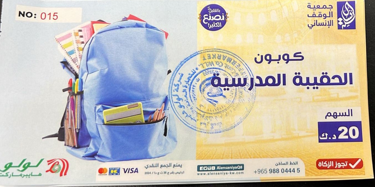 استقبلت الجمعية الكويتية للوقف الإنساني والتنمية العام الدراسي الجديد 2024-2025 بتوزيع الحقائب المدرسية والمستلزمات التعليمية على طلاب العلم من الأيتام وأبناء الأسر المتعففة داخل الكويت.