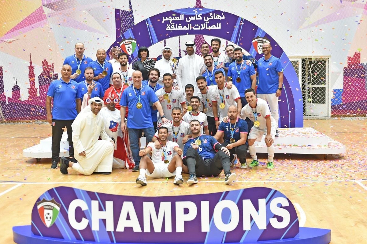 توج الفريق الأول لكرة قدم الصالات المغطاة بنادي الكويت بطلا لكأس السوبر، بفوزه على كاظمة بركلات الترجيح 7-6، وذلك بعد انتهاء الوقت الأصلي بالتعادل الإيجابي بخمسة أهداف لكل منهما.