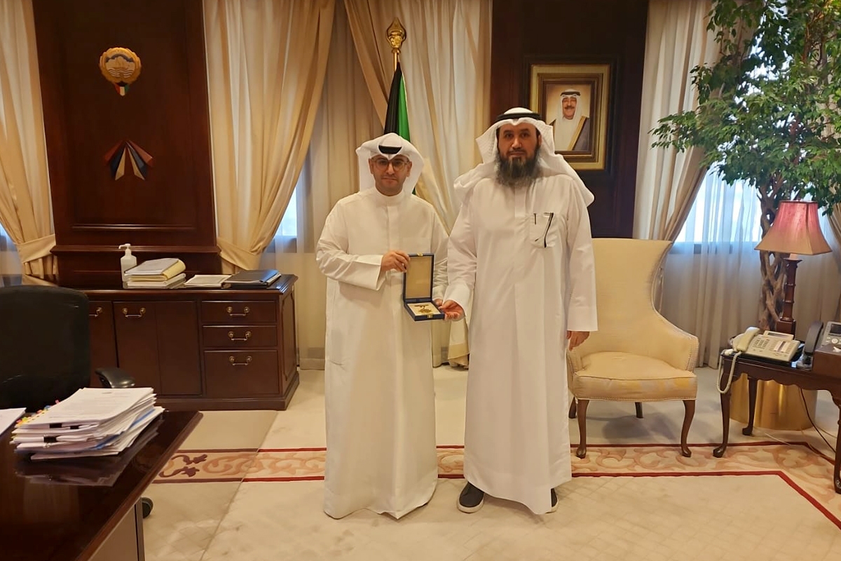 وذكر العتل، في تصريح، عقب اللقاء، أنه قام باسم أعضاء مجلس إدارة الجمعية بتقديم التهاني الى الوزير المشاري على الثقة السامية، وقدم له وسام الجمعية، موضحا أنه قد تم منح الوزير الوسام باعتباره عضوا فاعلا إبان توليه العمل التطوعي في رابطة المعماريين الكويتية بالجمعية.