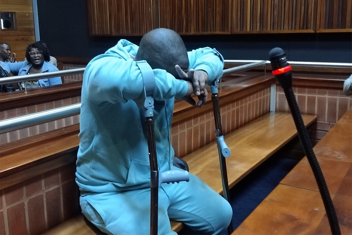 وبقي نكوسيناتي فاكاثي متماسكاً خلال التلاوة الطويلة لعقوباته، وخبأ رأسه بين ذراعيه، وأسنده إلى عكازين، إذ بُترت ساقه بعد إصابته بطلق ناري عندما أوقفته الشرطة.